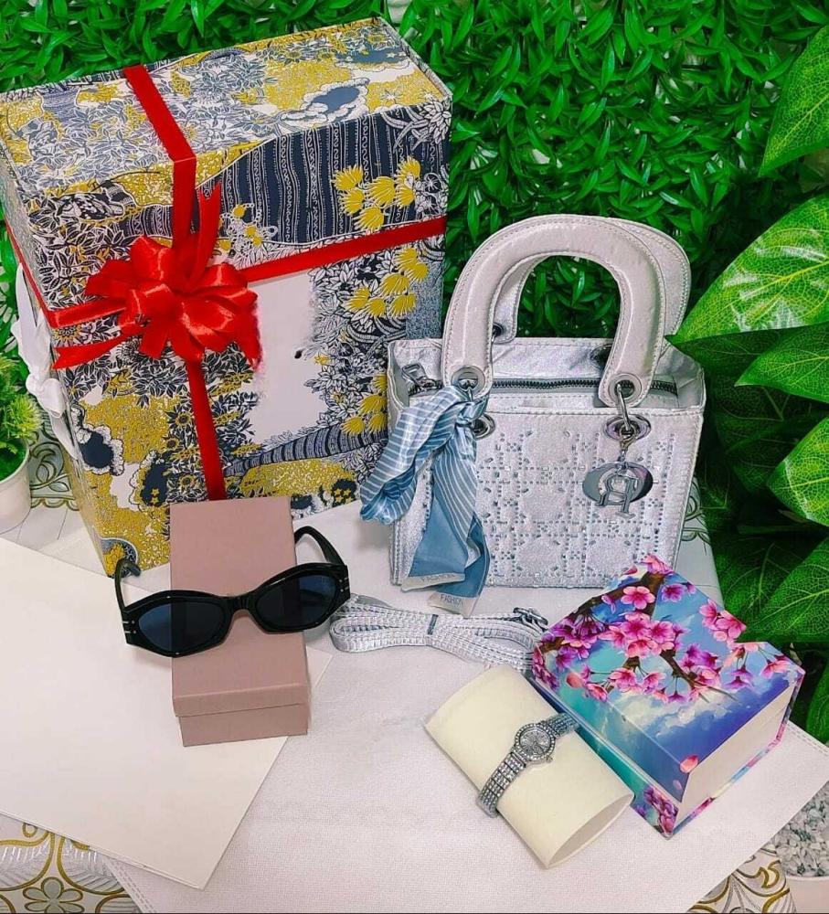 - فاجئ من تحب بهدية تجمع بين الفخامة والطابع الشخصي مع أفضل أفكار هدايا عيد ميلاد للبنات من متجر هدايا القمة. طقم نسائي أنيق يتكون من ساعة فاخرة فصوص ، شنطة فخمة بالوان متعددة , نظارات شمسية فاخرة مع امكانية اضافة عبارة على كرت إهداء بعبارة مخصصة، كل ذلك داخل علبة وكيس بتغليف أنيق يليق بالمناسبات المميزة.