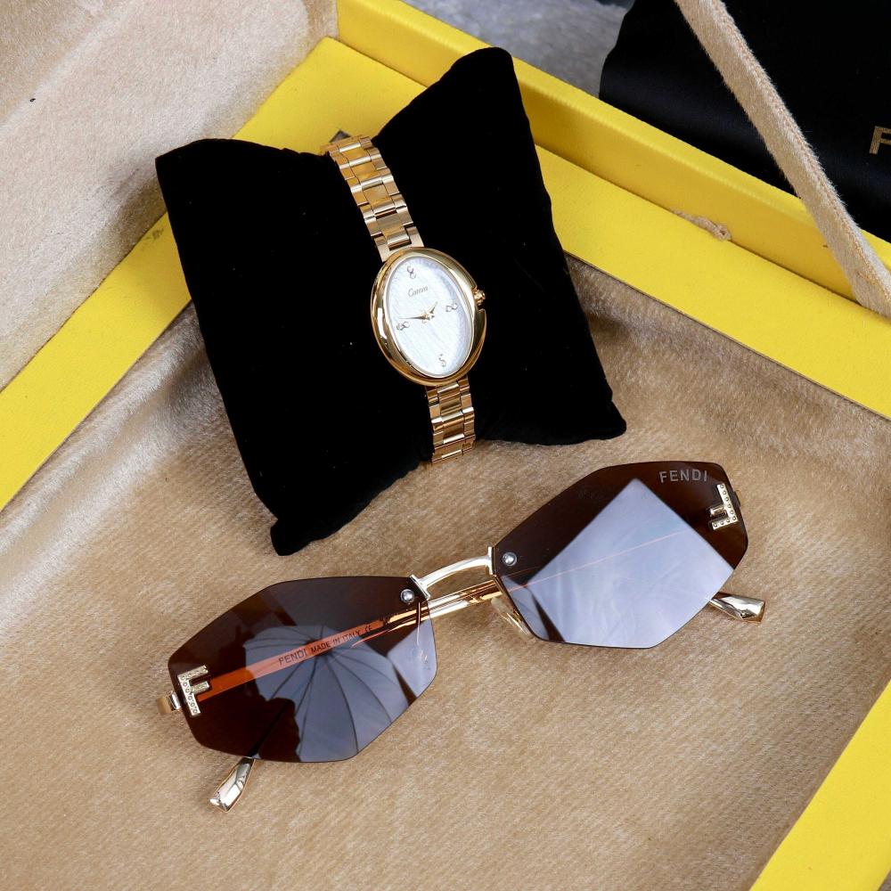 - نظارة فاخرة مع علبة كرتونية، ضمان ومنديل.